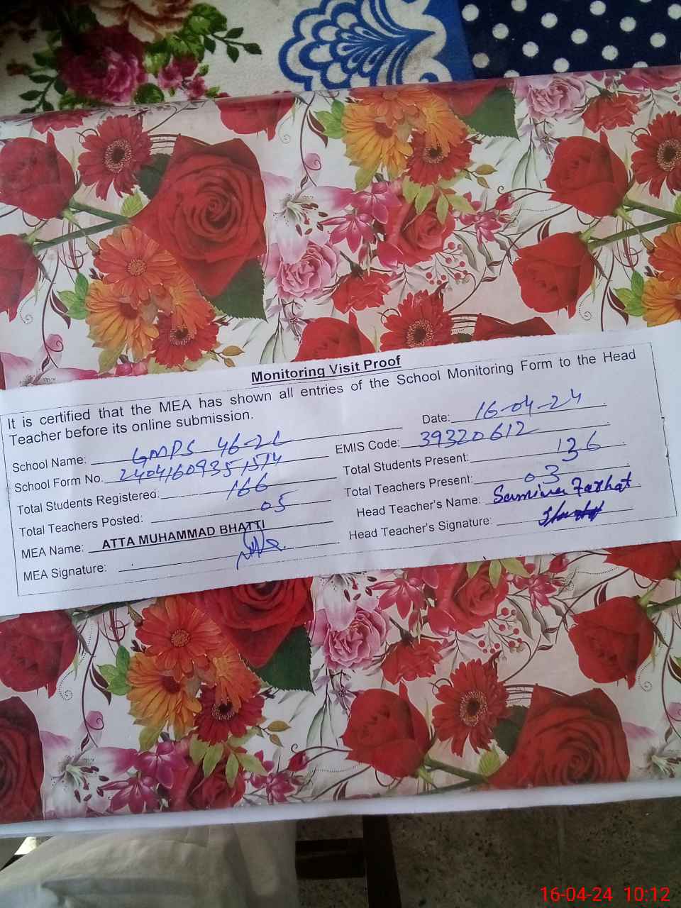 | Certified that this School was Inspected by the Undersigned MEA/DMO Today and the Information Stated Above is as Per Record. | |||||