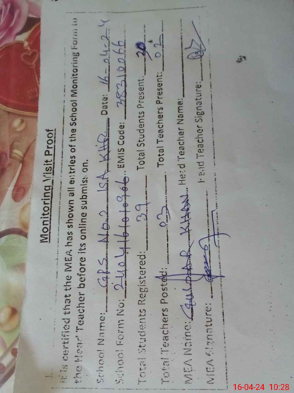 | EMIS Code: 38310066 | Name of School: GPS NO 2 ISA KHEL PO ISA KHEL TEH MIANWALI | |||