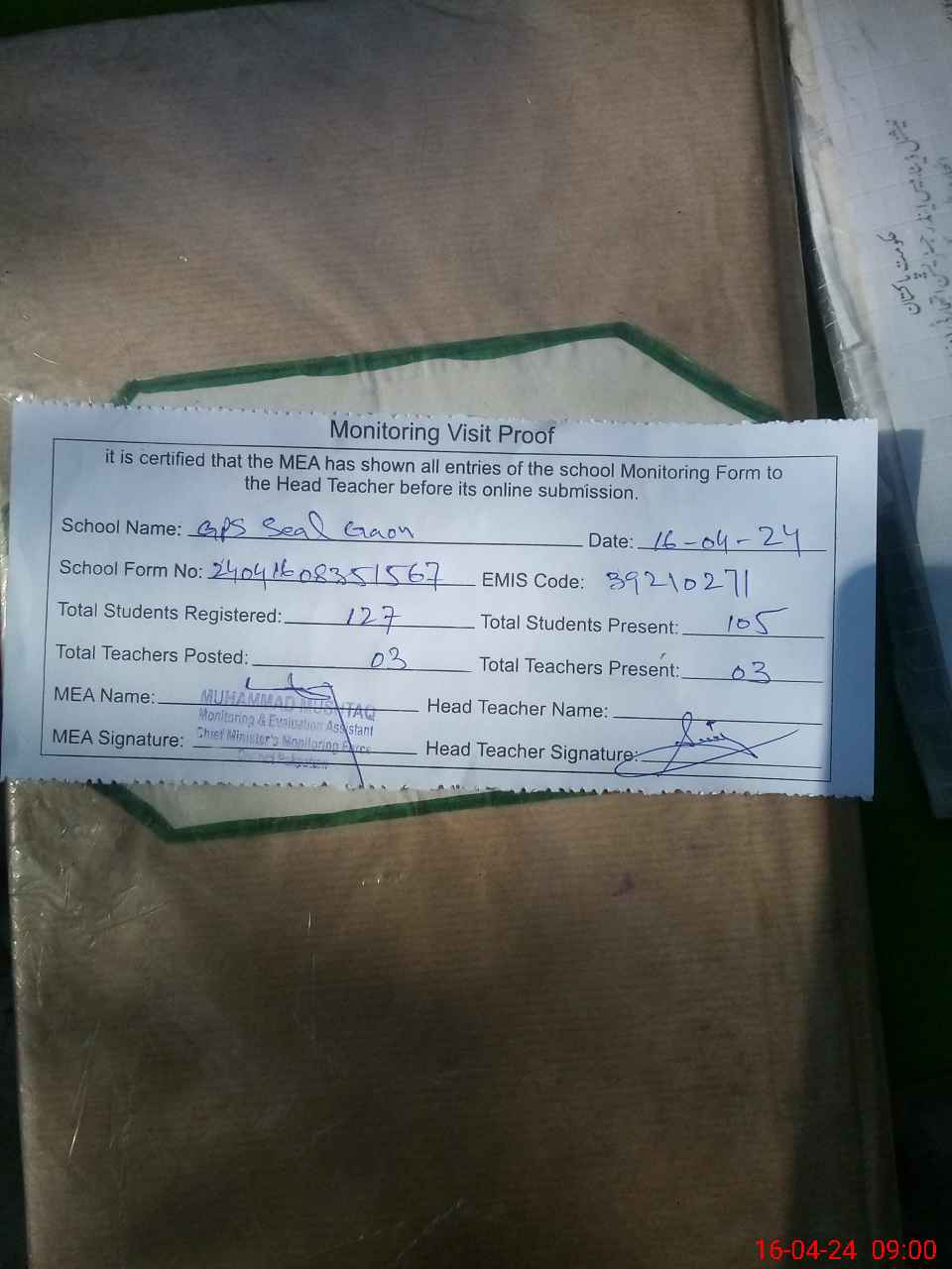 | EMIS Code: 39210271 | Name of School: GPS SEAL GAON P/O CHAK BEDI PAKPATTAN | |||