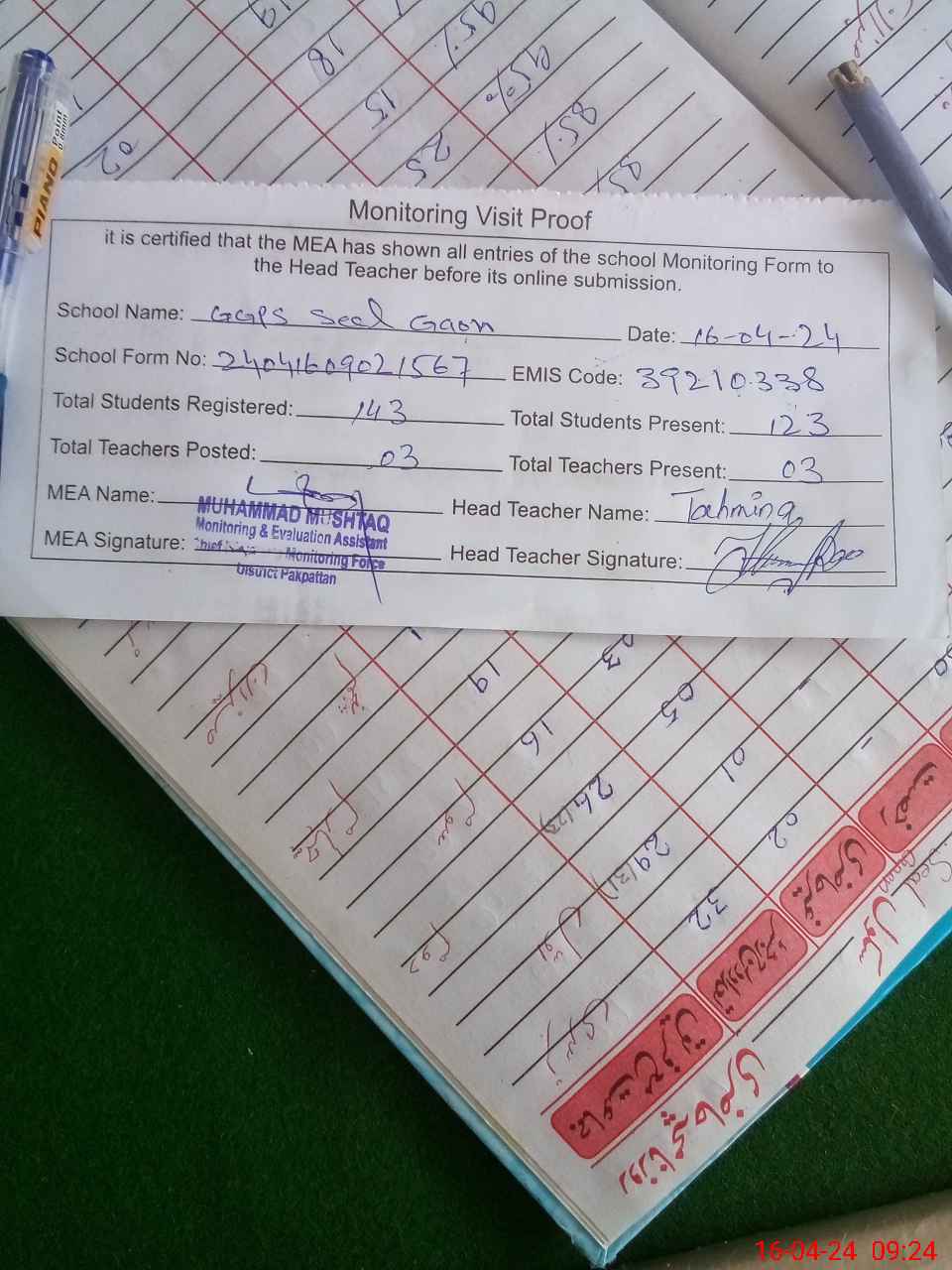 | EMIS Code: 39210338 | Name of School: GGPS SEEL GAON | |||