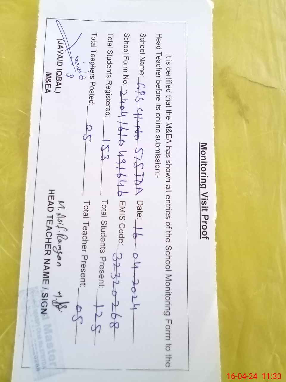 | EMIS Code: 32320268 | Name of School: GPS CHAK NO.575 TDA | |||