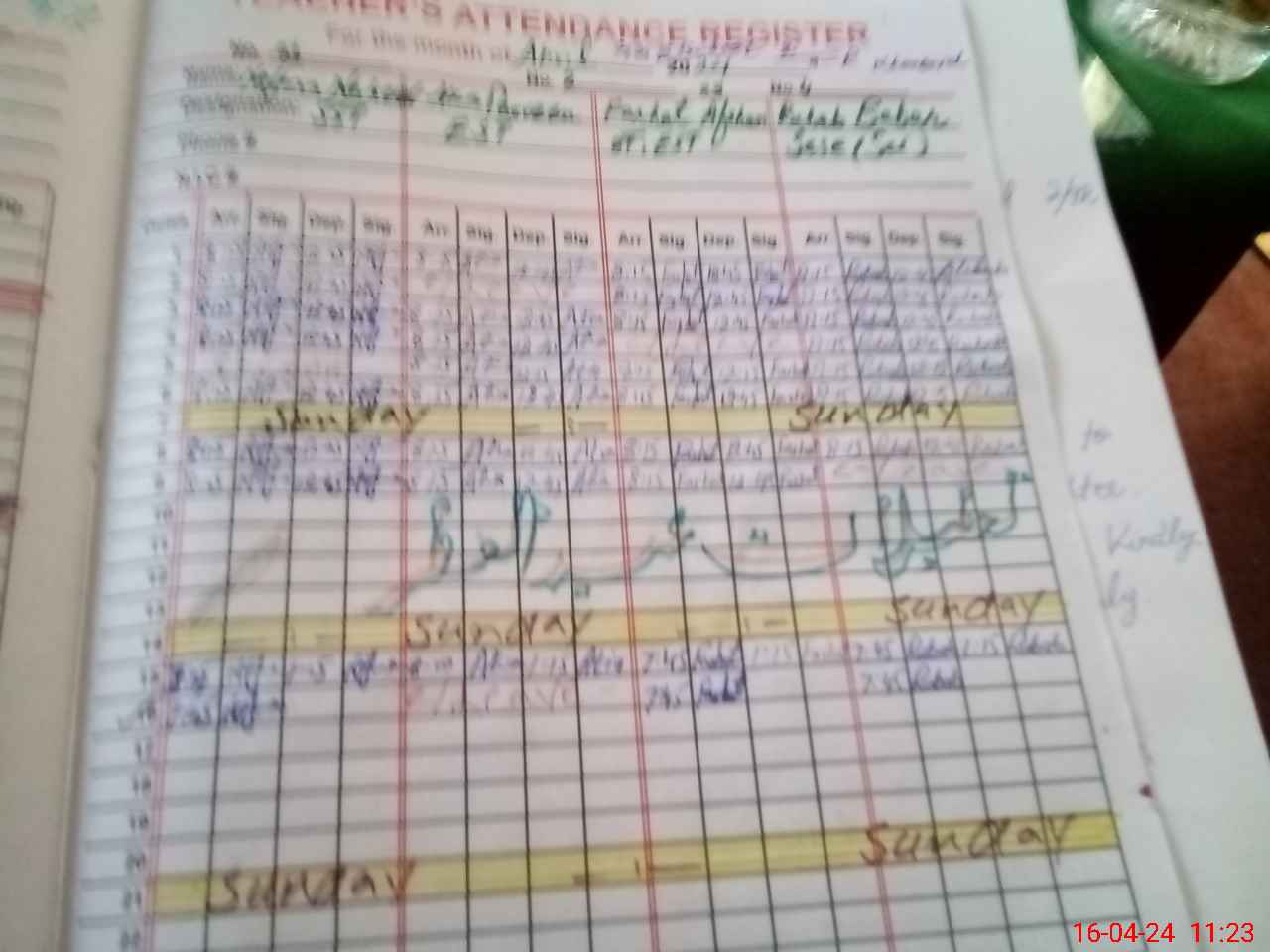 | CNIC | Full Name | Designation | R/C | Absence During Last Calender Month |
