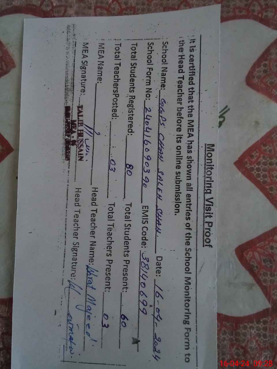 | EMIS Code: 38140699 | Name of School: GGPS CHAH SALEH SHAH | |||
