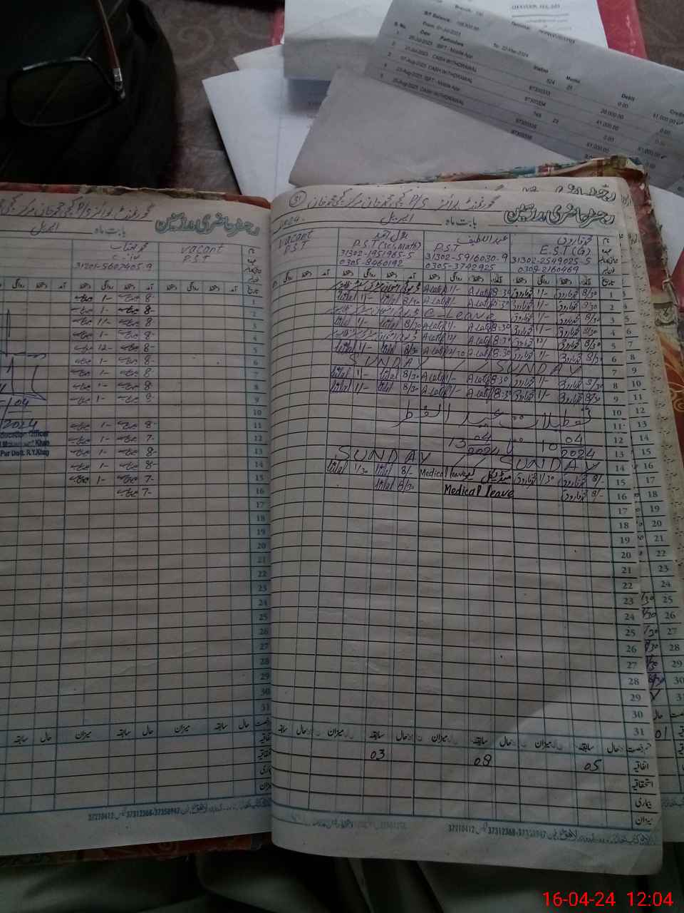 | Leave | Duty | Absent | Maternity | Medical | Ex- Pak |