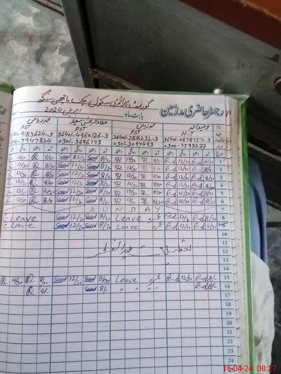 | Name: Mu**** Ri**** Designation: (School Headmaster's/Headmistress's) PST Phone/Cell Number: 03**** |