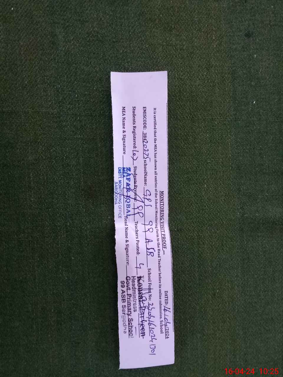 | EMIS Code: 38420275 | Name of School: GPS CHAK NO.99 A-SB | |||