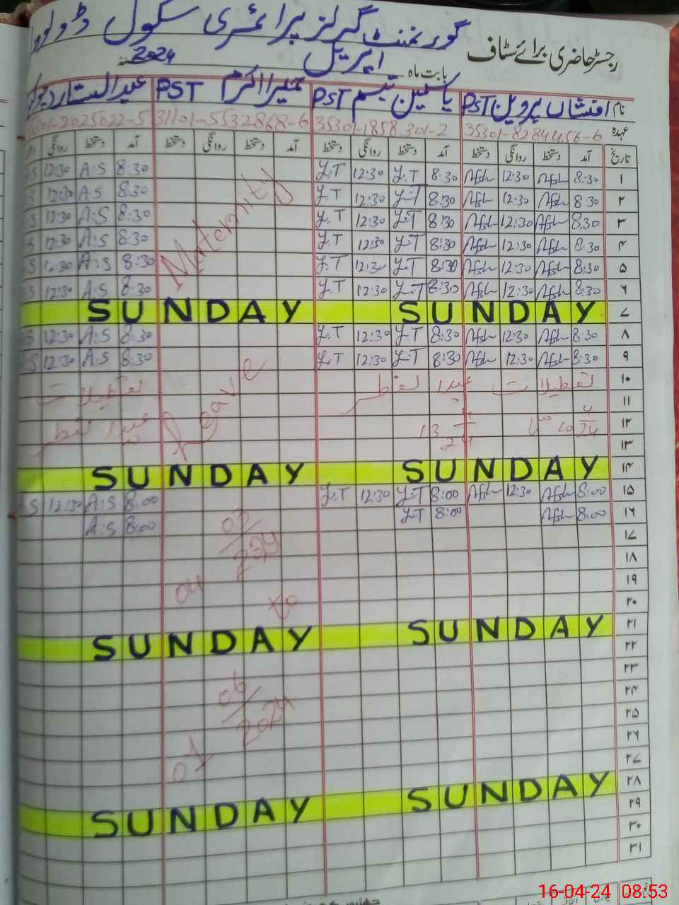 | 31**** | Hu**** Ak**** | PST | Regular | 28 | 0 | 0 | 28 | 0 | 0 | 0 | 0 | 0 | Maternity |