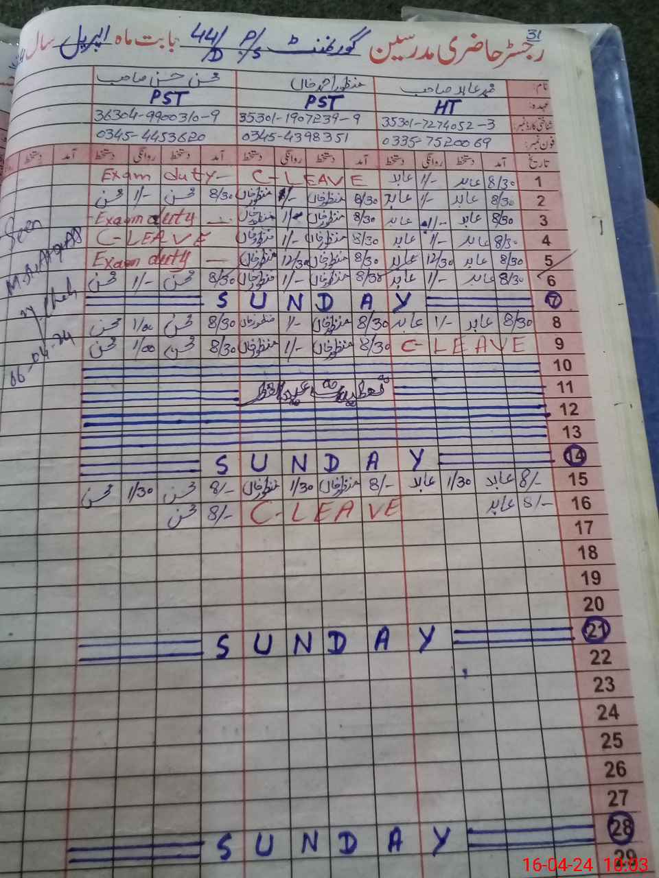 | Name: Mu**** Ab**** Designation: (School Headmaster's/Headmistress's) PST Phone/Cell Number: 03**** |