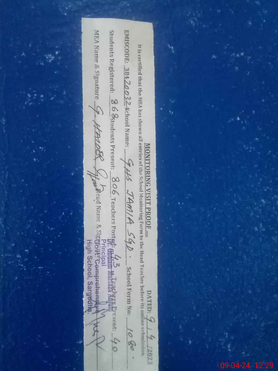 | EMIS Code: 38420032 | Name of School: GHS COMPREHENSIVE SARGODHA | |||