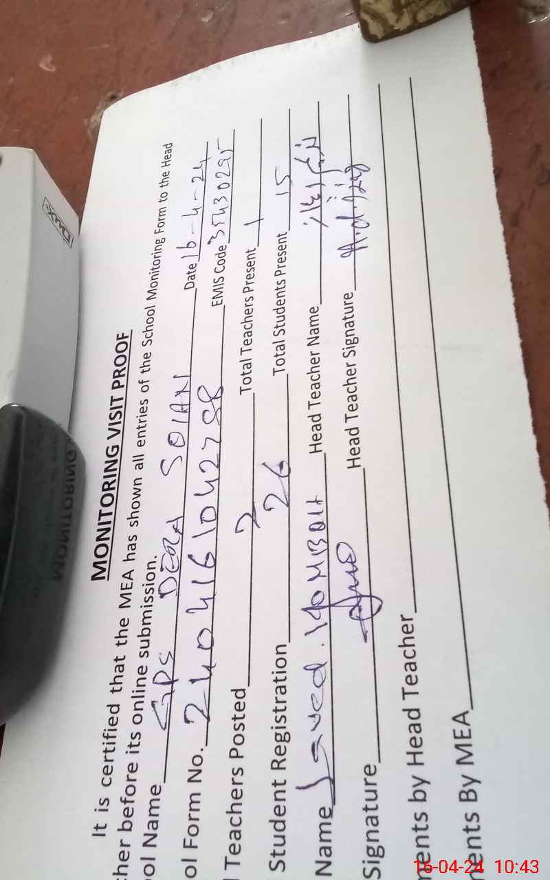 | EMIS Code: 35430295 | Name of School: GPS DERA SOIAN | |||