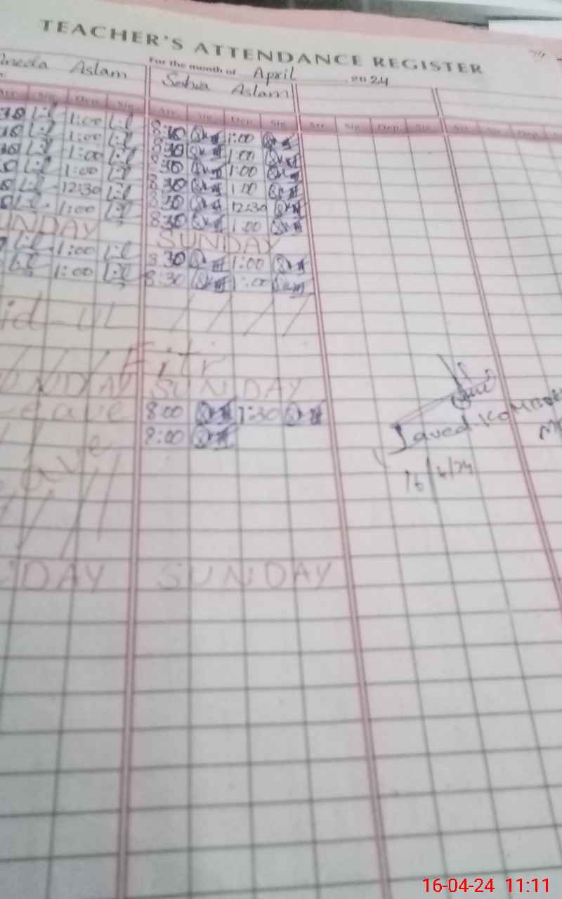 | CNIC | Full Name | Designation | R/C | Absence During Last Calender Month |