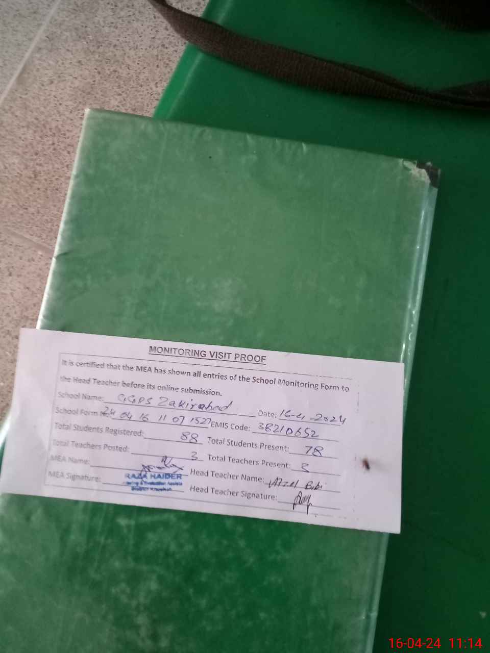 | EMIS Code: 38210652 | Name of School: GGPS ZAKIR ABAD HAMOKA | |||