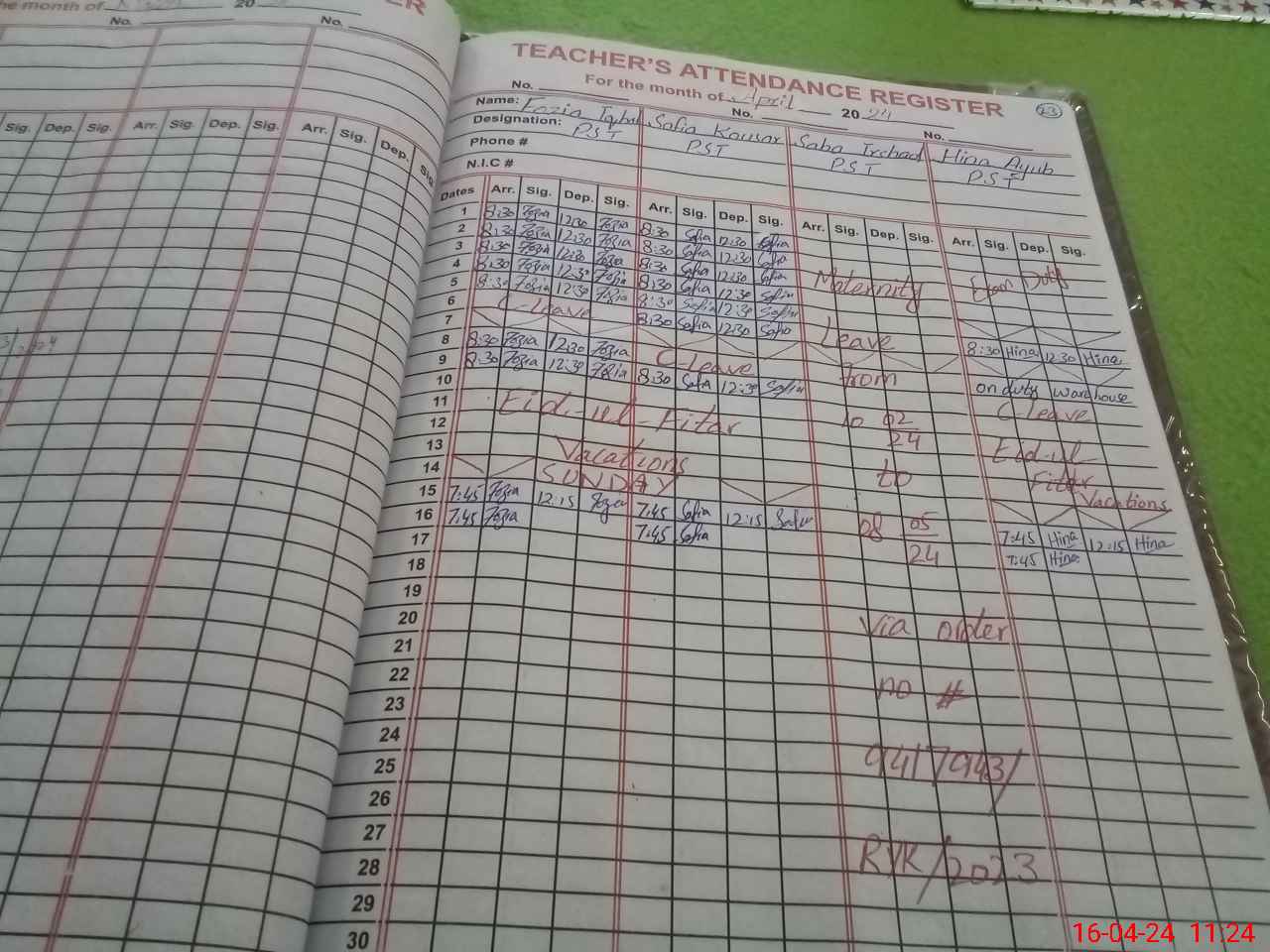 | Leave | Duty | Absent | Maternity | Medical | Ex- Pak |