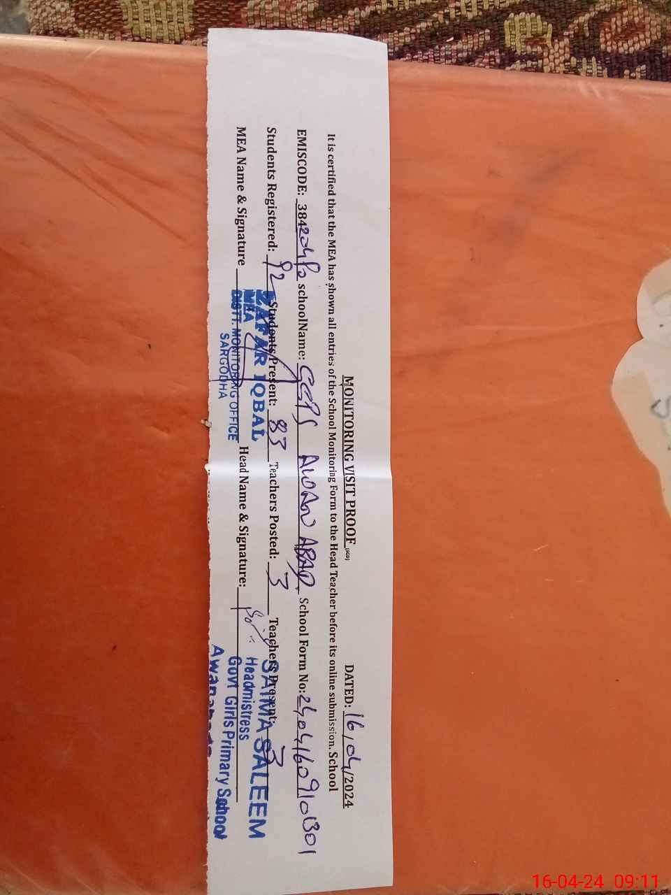 | EMIS Code: 38420490 | Name of School: GGPS AWAN ABAD | |||
