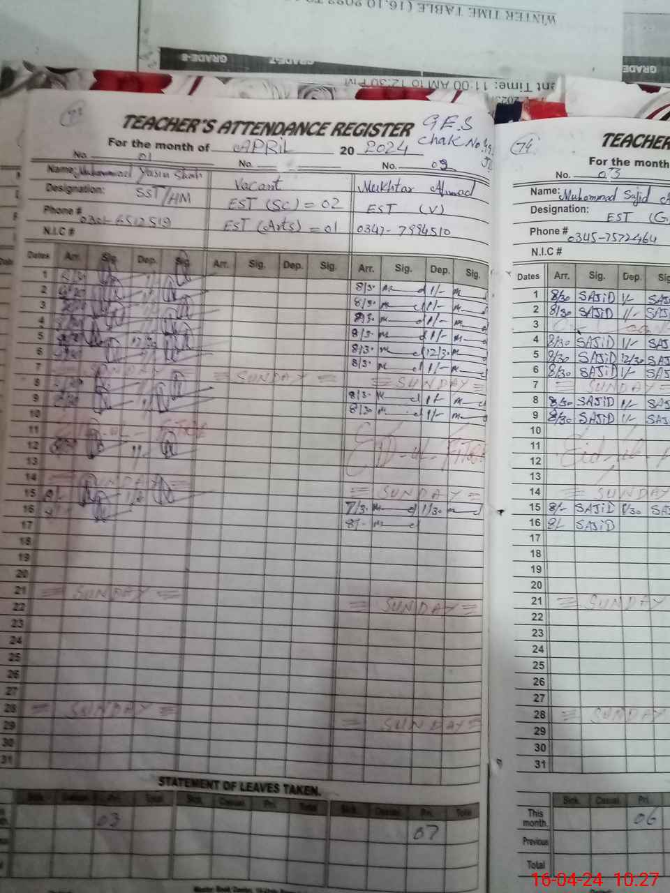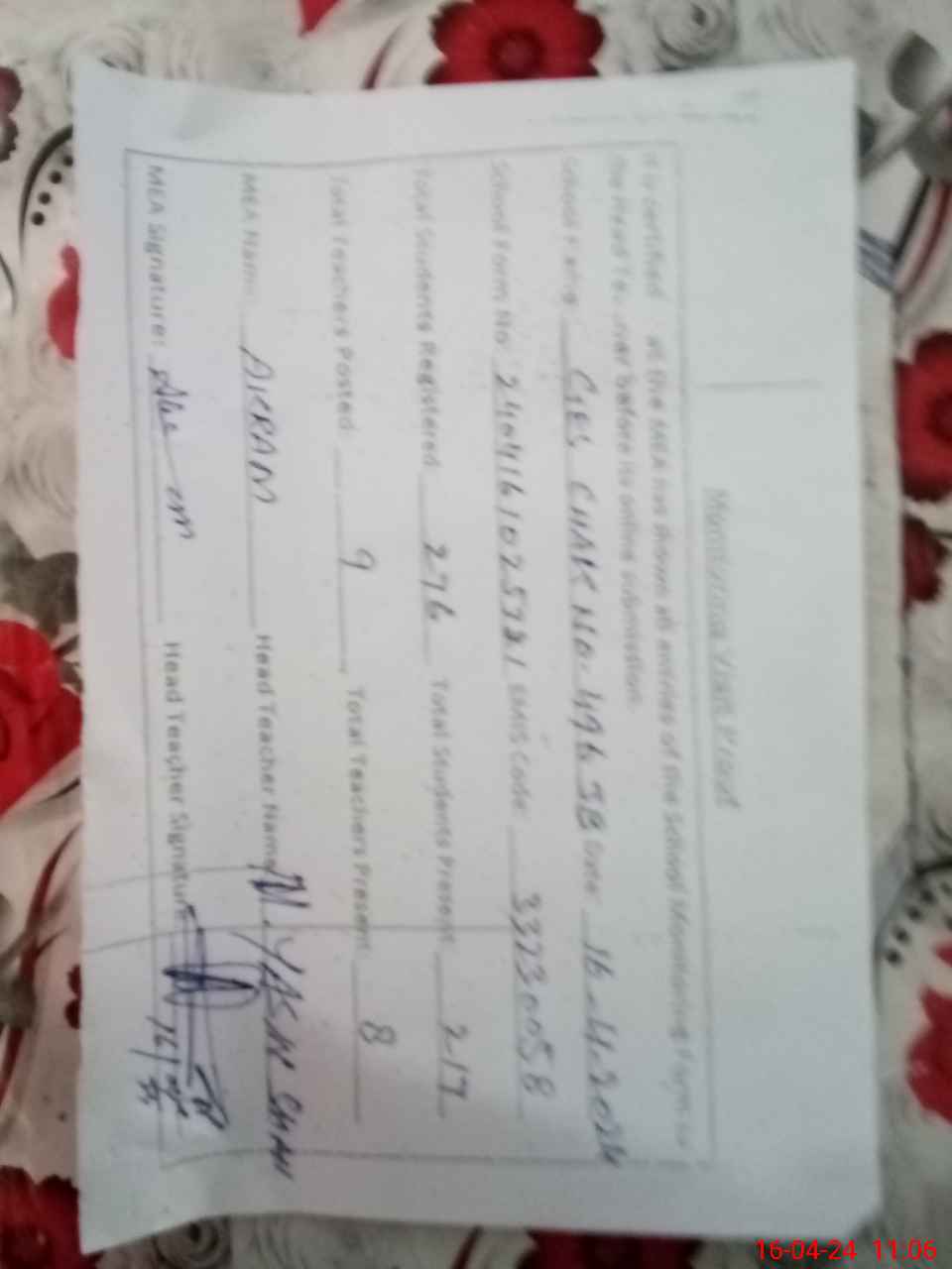 | Name: MU**** YA**** Designation: (School Headmaster's/Headmistress's) SST Phone/Cell Number: 03**** |