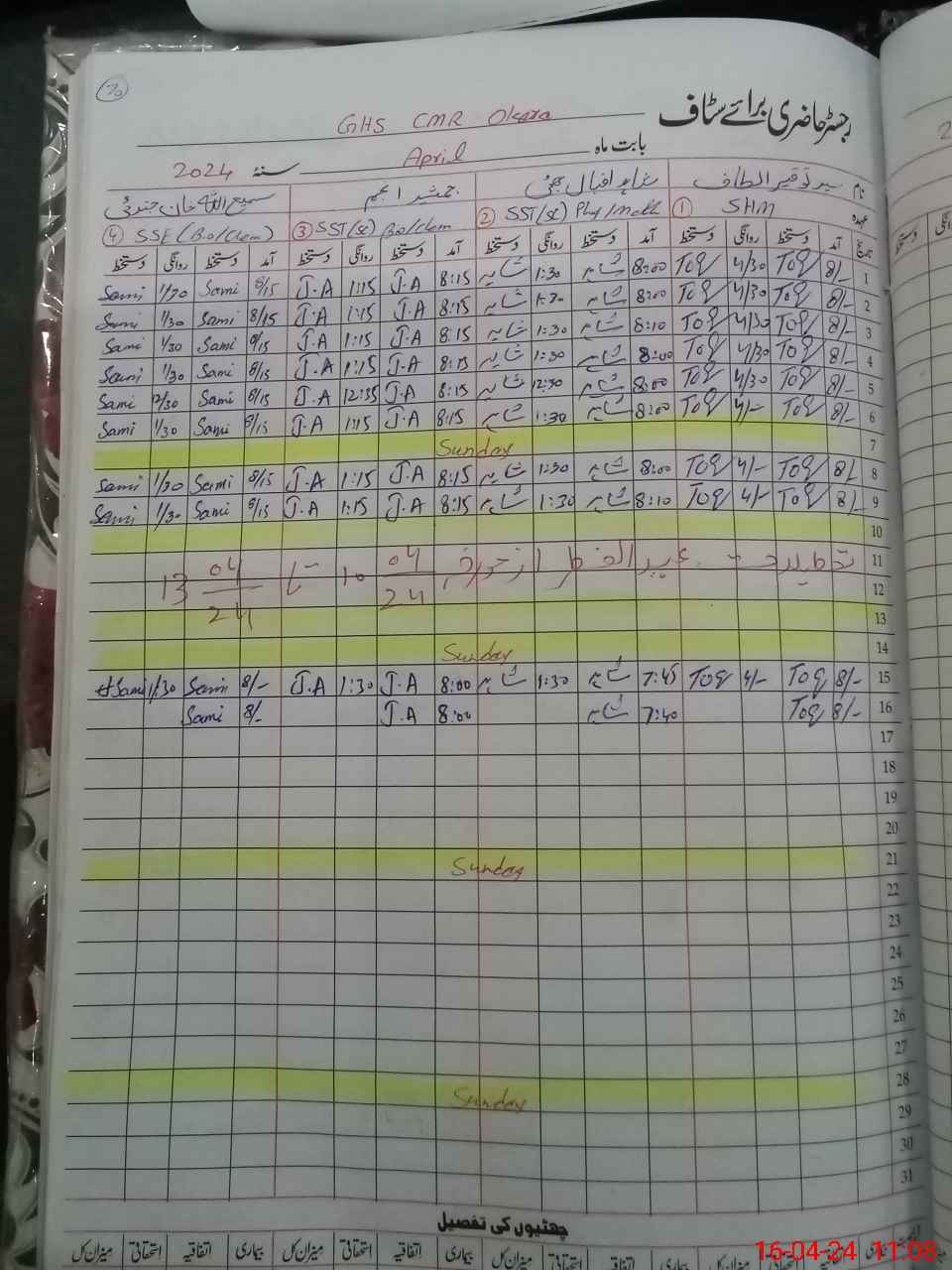 | CNIC | Full Name | Designation | R/C | Absence During Last Calender Month |