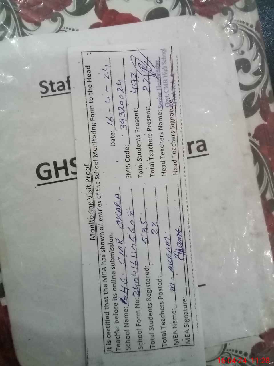 | EMIS Code: 39320024 | Name of School: GHS CMR OKARA | |||