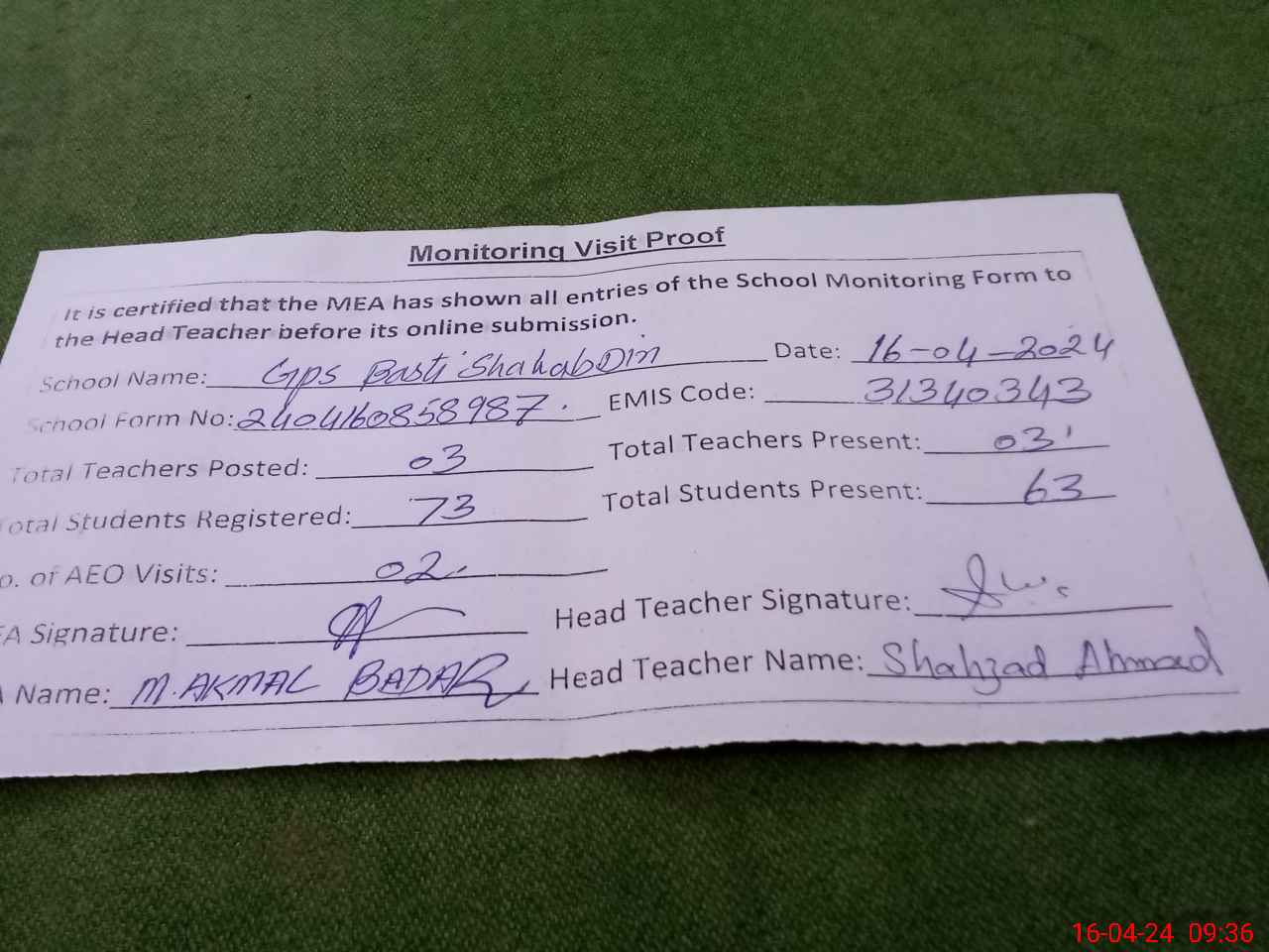 | EMIS Code: 31340343 | Name of School: GPS BASTI SHAHAB DIN | |||