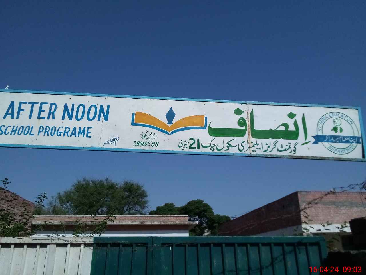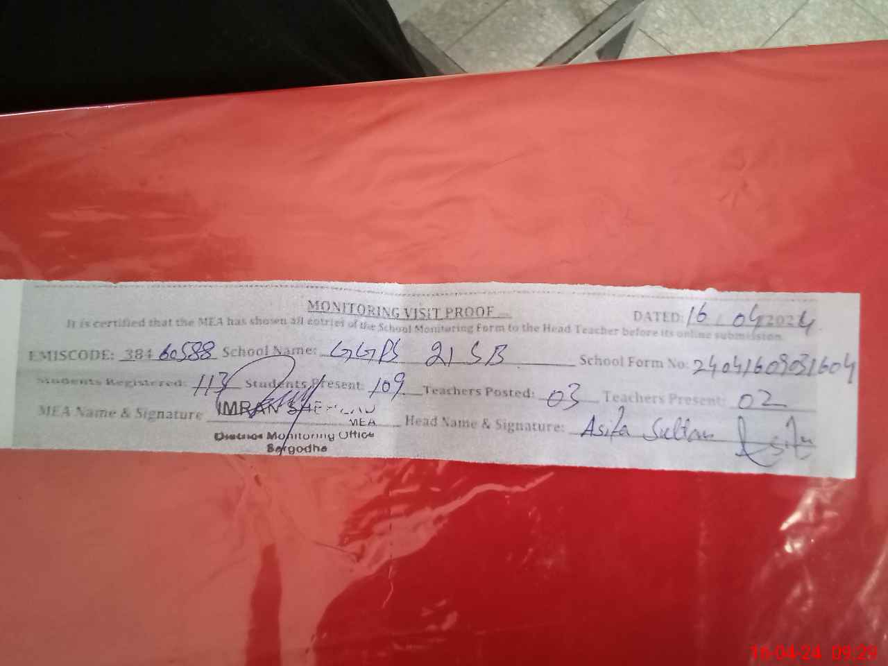 | EMIS Code: 38460588 | Name of School: GGES CHAK NO. 21 SB | |||