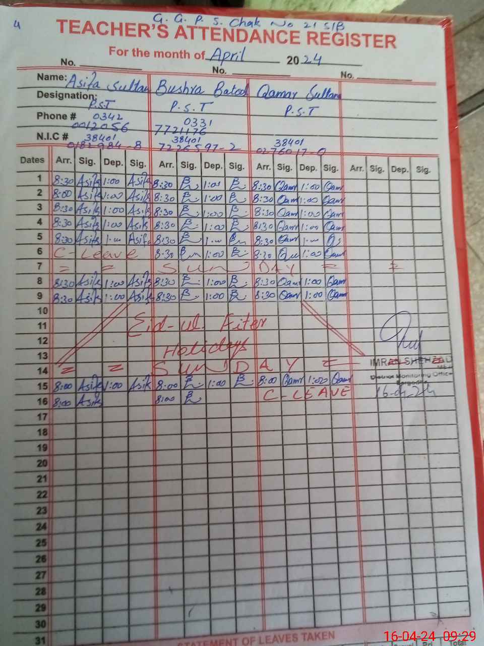 | Name: AS**** SU**** Designation: (School Headmaster's/Headmistress's) PST Phone/Cell Number: 03**** |