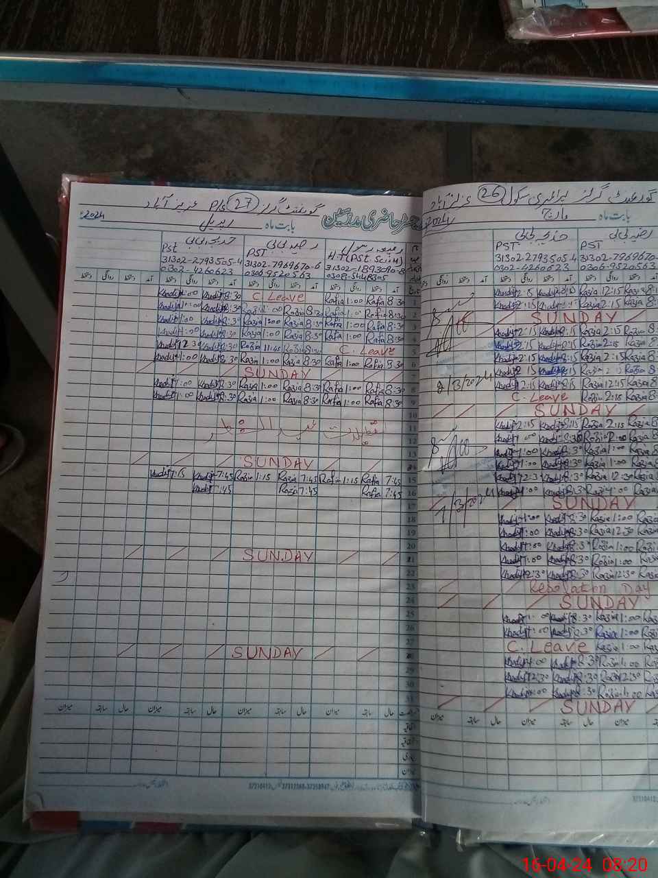 | CNIC | Full Name | Designation | R/C | Absence During Last Calender Month |