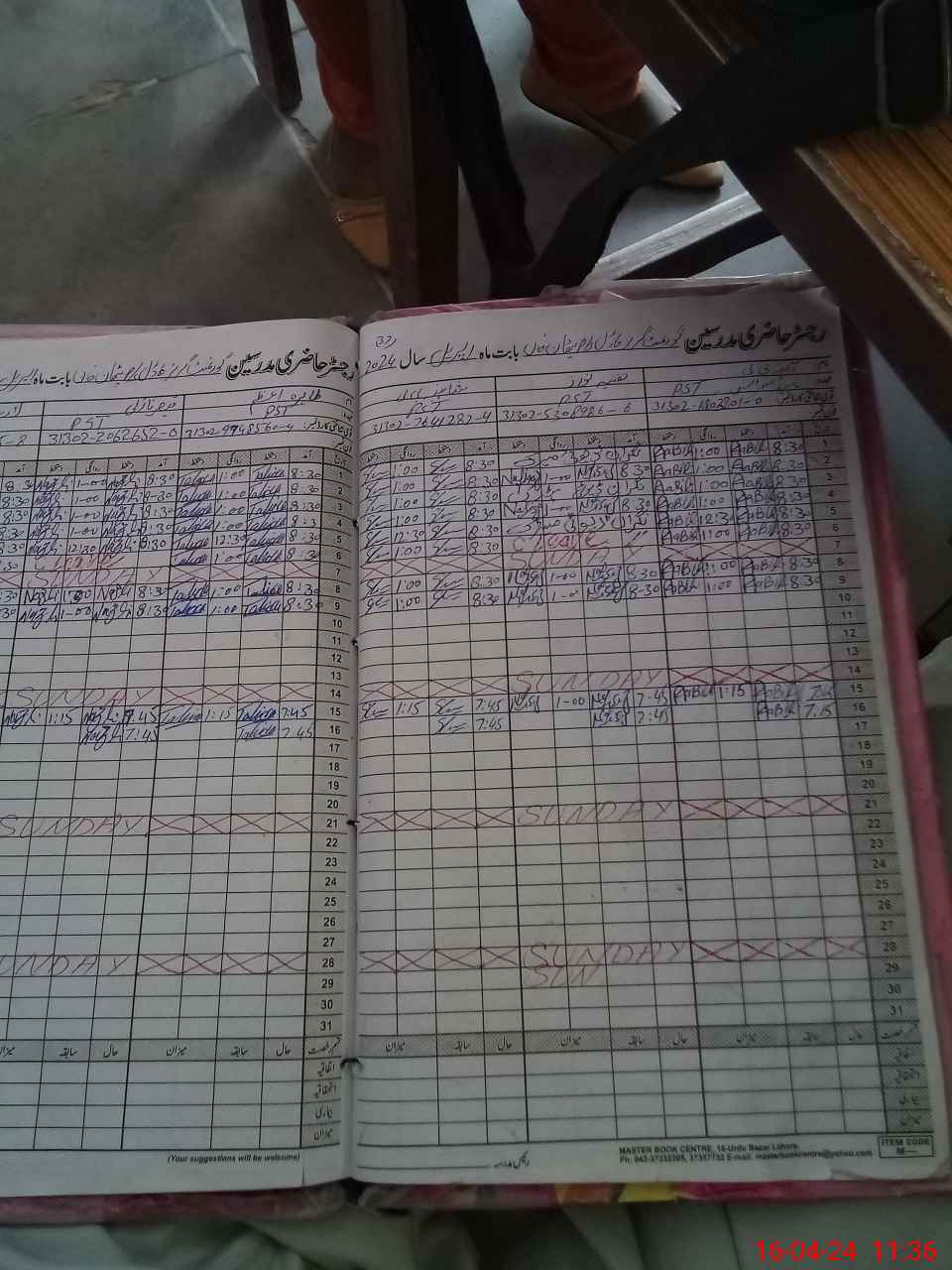 | CNIC | Full Name | Designation | R/C | Absence During Last Calender Month |