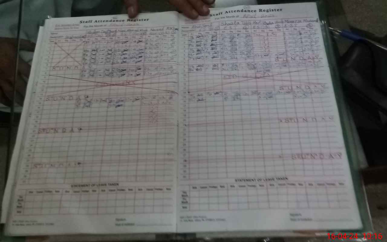 | CNIC | Full Name | Designation | R/C | Absence During Last Calender Month |