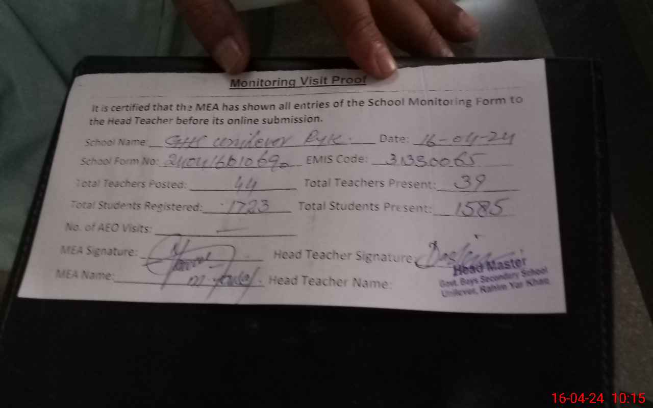 | EMIS Code: 31330065 | Name of School: GHS UNILEVER R.Y.KHAN | |||