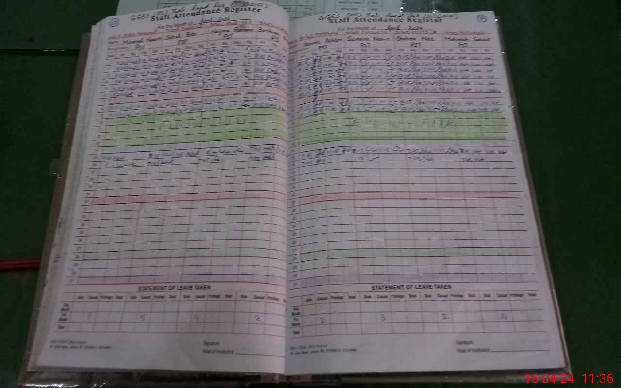 | CNIC | Full Name | Designation | R/C | Absence During Last Calender Month |