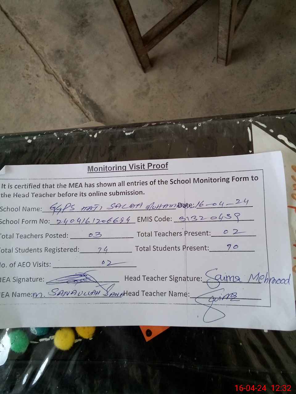 | EMIS Code: 31320439 | Name of School: GGPS HAJI SALEH MUHAMMAD FEROZA | |||