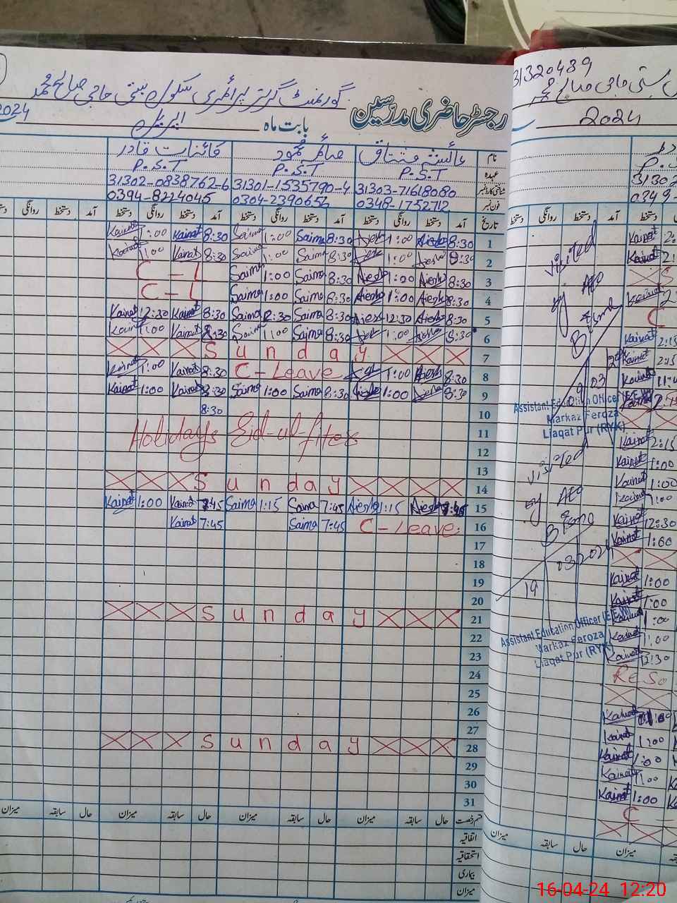 | Name: Ay**** Mu**** Designation: (School Headmaster's/Headmistress's) PST Phone/Cell Number: 03**** |