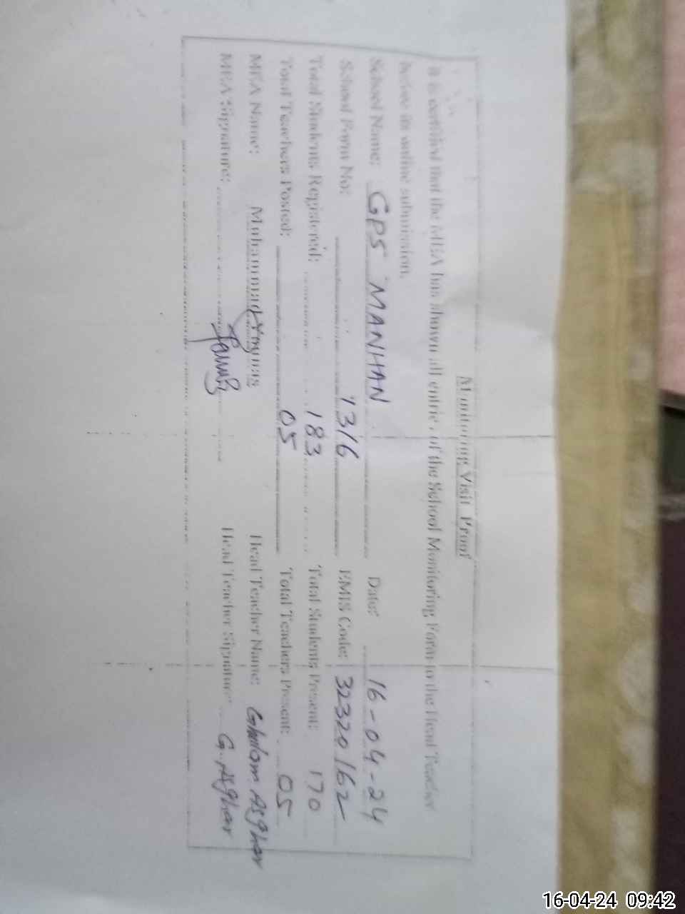 | EMIS Code: 32320162 | Name of School: GPS MANAH | |||