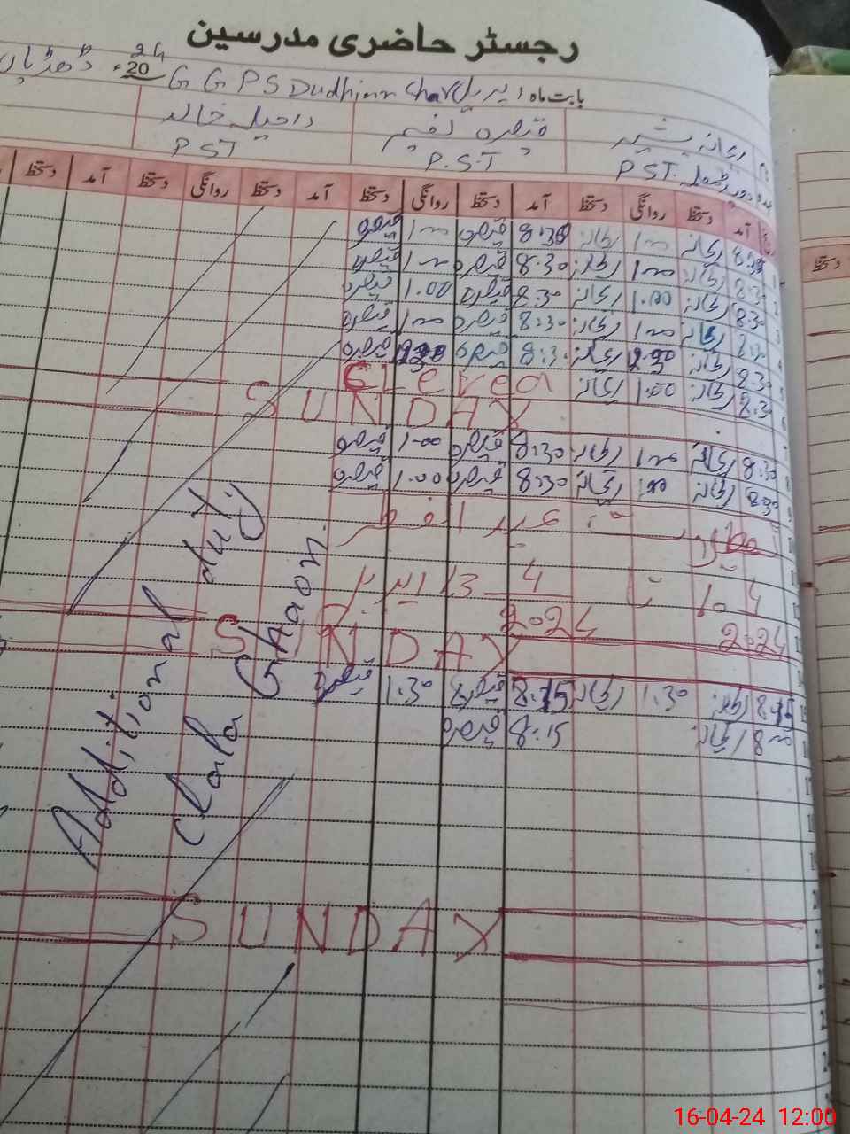 | CNIC | Full Name | Designation | R/C | Absence During Last Calender Month |