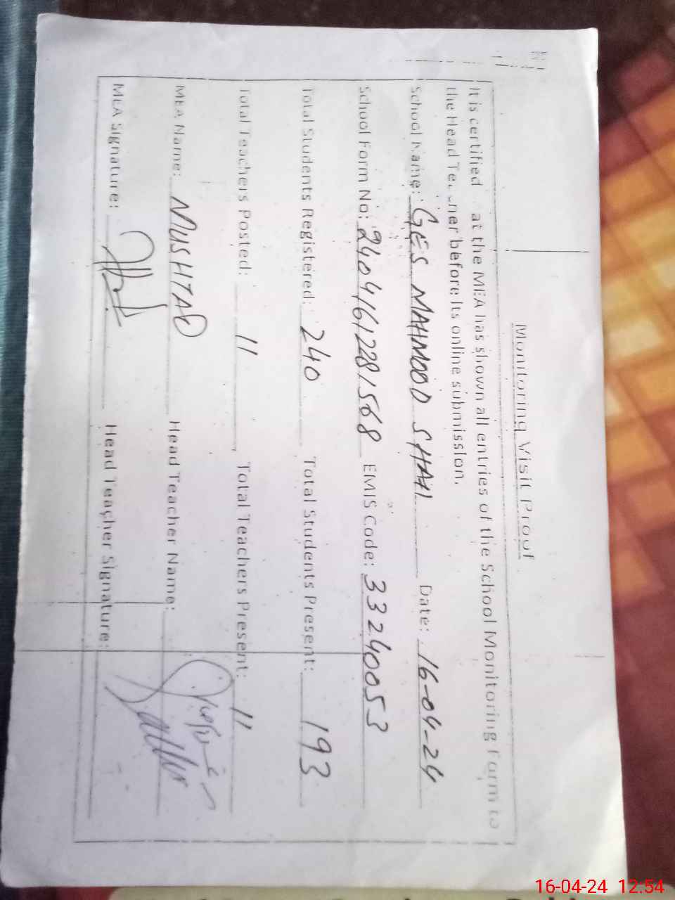 | EMIS Code: 33240053 | Name of School: GES MAHMOOD SHAH | |||