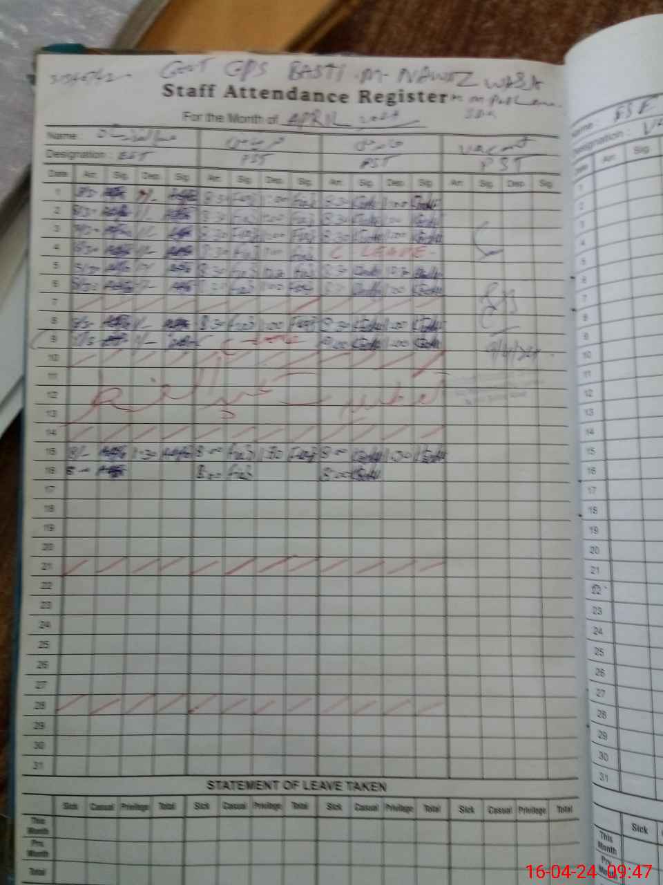 | Leave | Duty | Absent | Maternity | Medical | Ex- Pak |