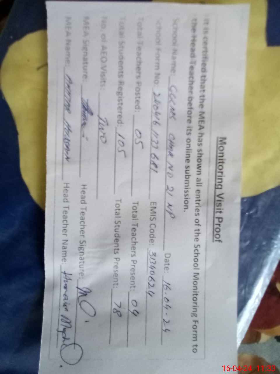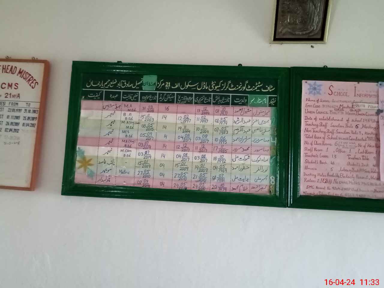 | EMIS Code: 31340624 | Name of School: GGCMS CHAK NO.21/NP | |||