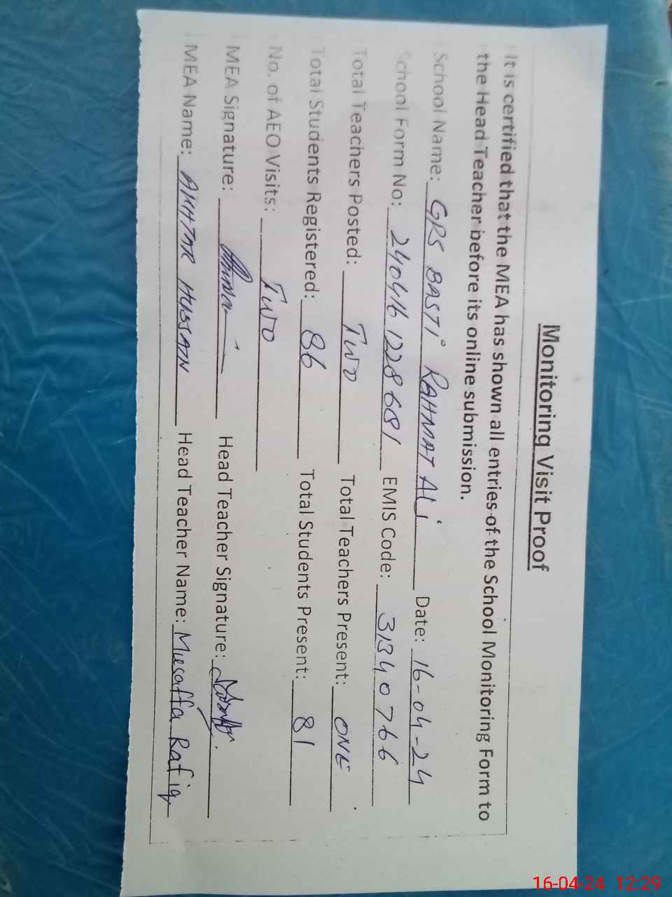 | EMIS Code: 31340766 | Name of School: GPS BASTI RAHMAT ALI | |||