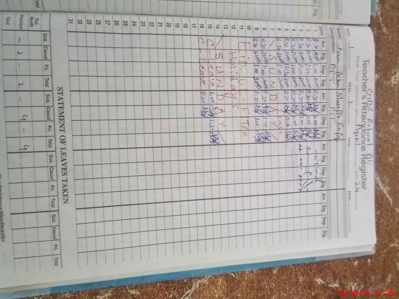 | Name: IR**** AS**** Designation: (School Headmaster's/Headmistress's) PST Phone/Cell Number: 03**** |