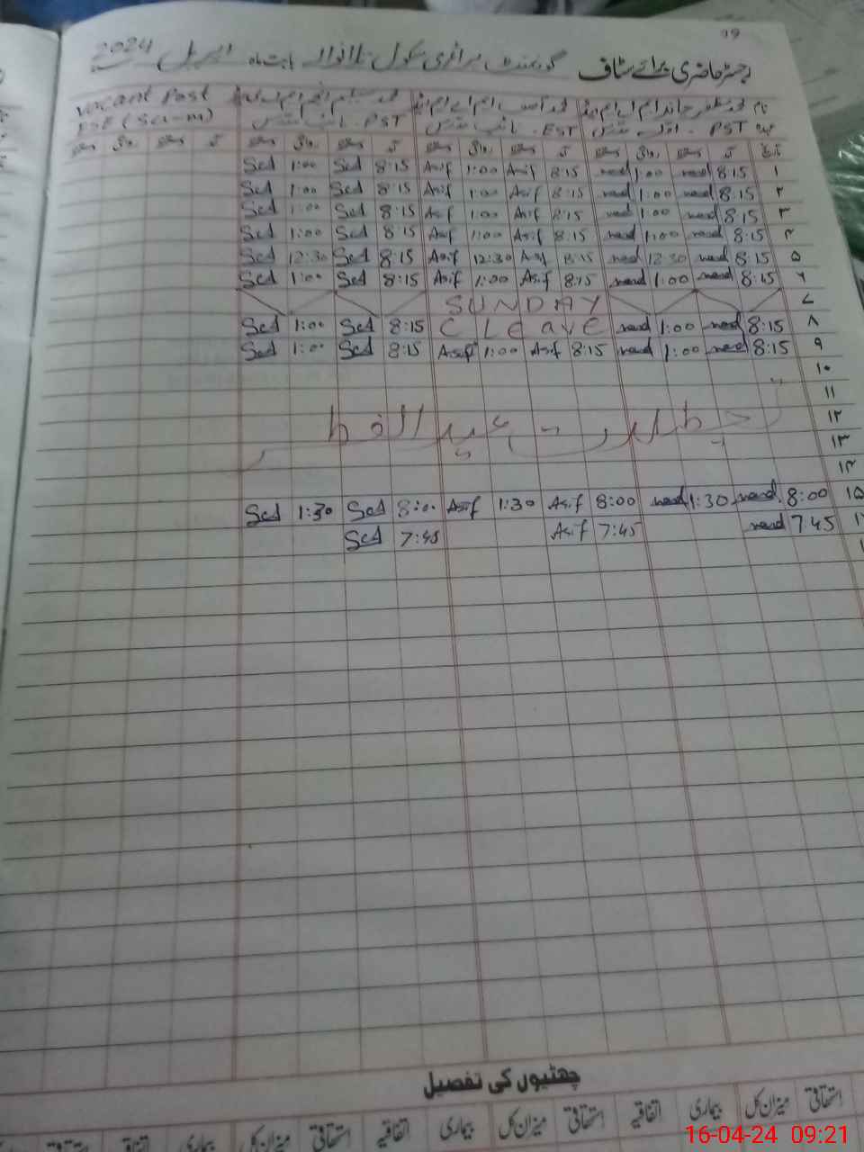 | CNIC | Full Name | Designation | R/C | Absence During Last Calender Month |