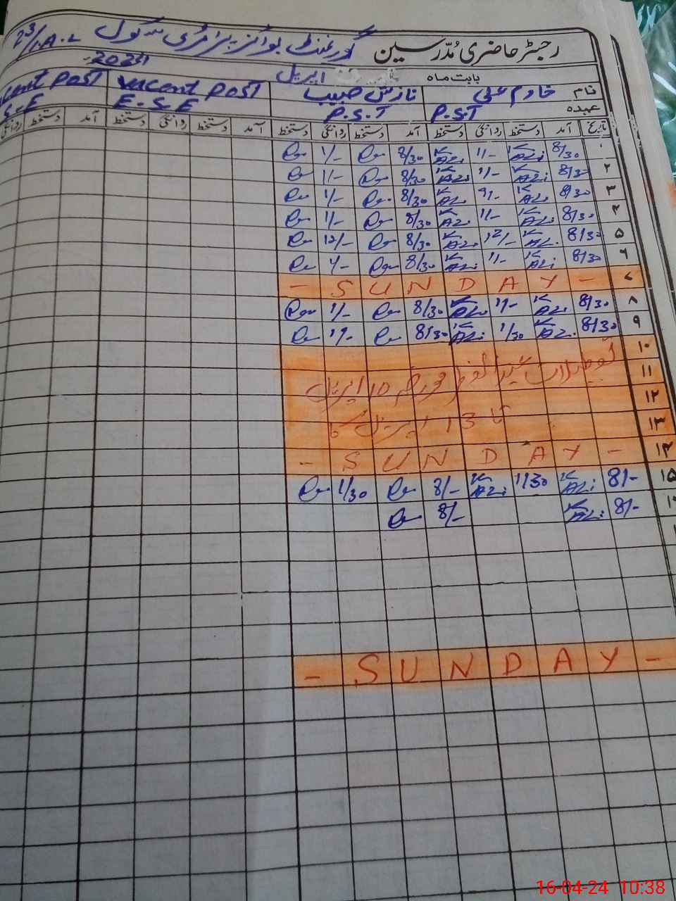 | CNIC | Full Name | Designation | R/C | Absence During Last Calender Month |