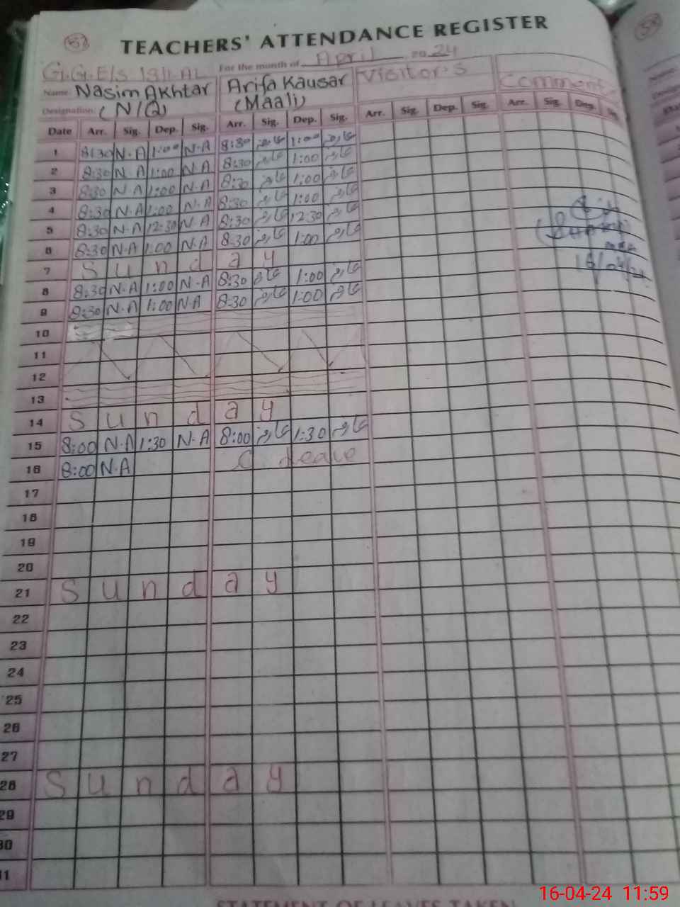 | Leave | Duty | Absent | Maternity | Medical | Ex- Pak |