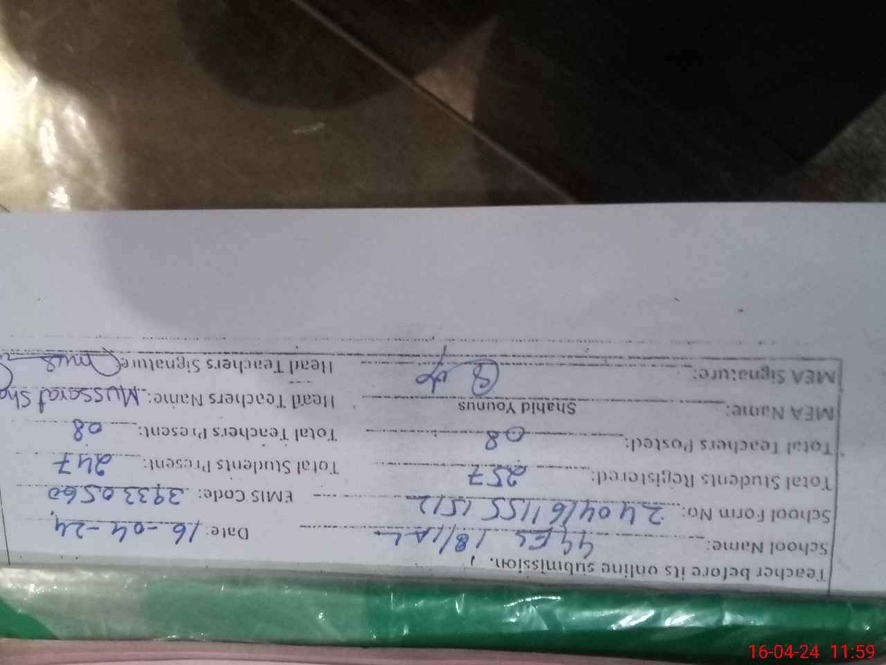 | Name: Mu**** Sh**** Designation: (School Headmaster's/Headmistress's) Sst Phone/Cell Number: 03**** |