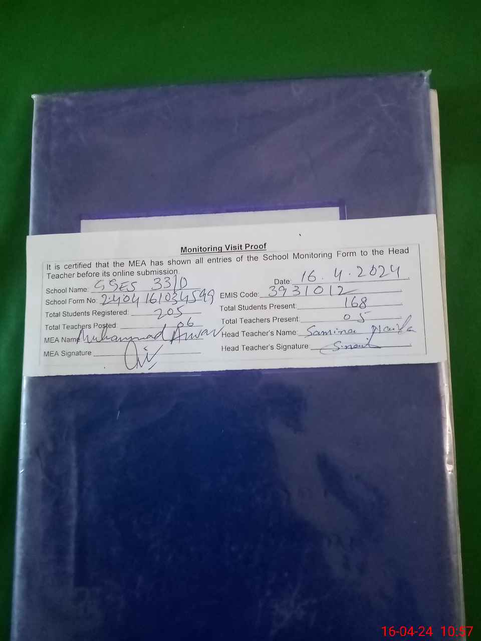 | EMIS Code: 39311012 | Name of School: GGES CHAK NO. 33-D | |||
