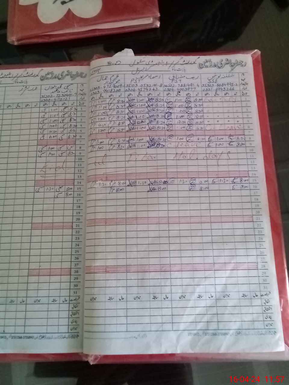 | CNIC | Full Name | Designation | R/C | Absence During Last Calender Month |
