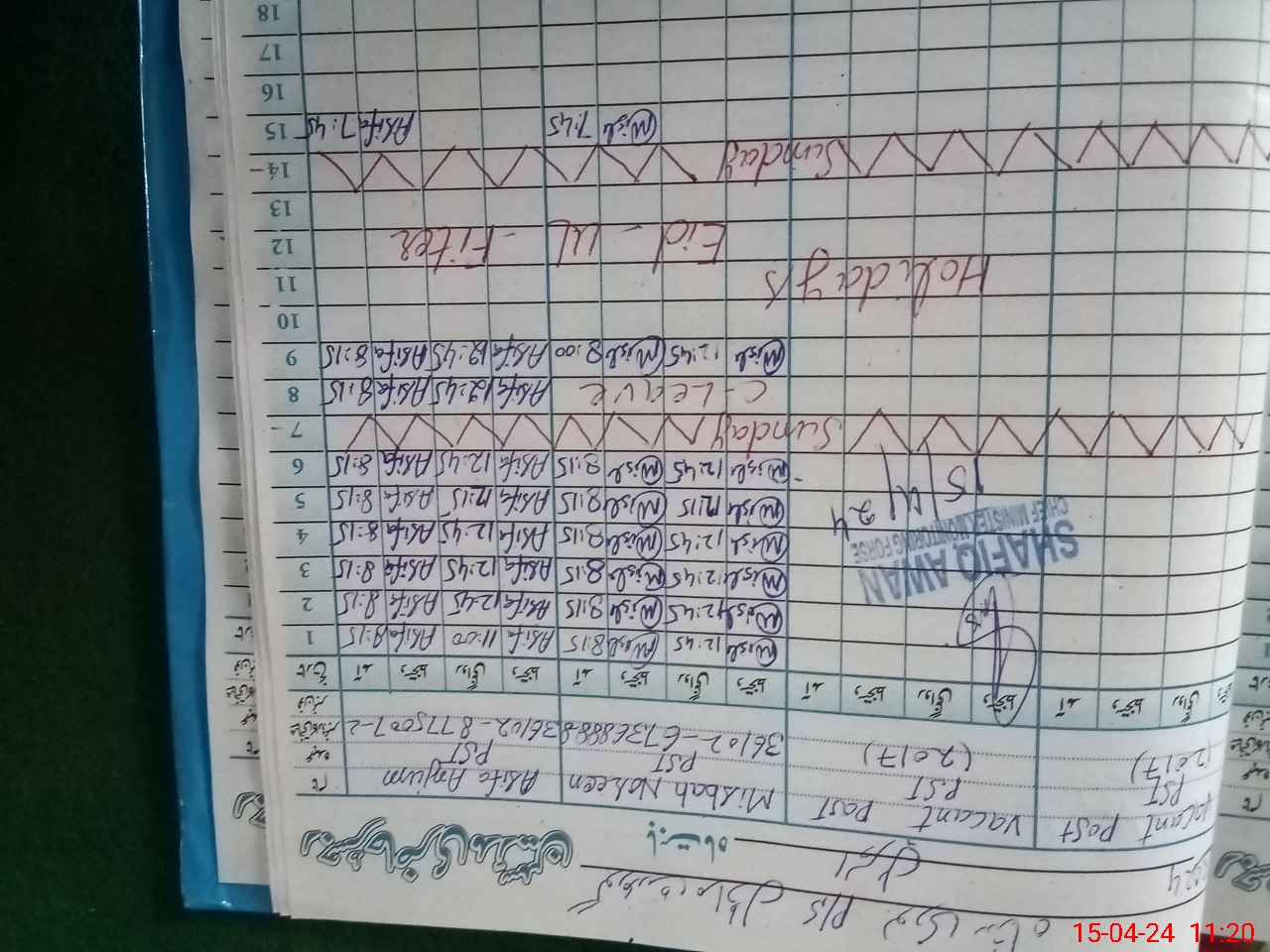 | Name: AS**** AN**** Designation: (School Headmaster's/Headmistress's) PST Phone/Cell Number: 03**** |