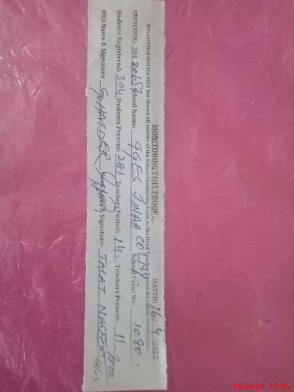 | Monitoring Date: 16-04-2024 | Start Time: 16-04-2024 11:15 AM | End Time: 16-04-2024 11:50 AM | Name of MEA: GH**** HA**** | |