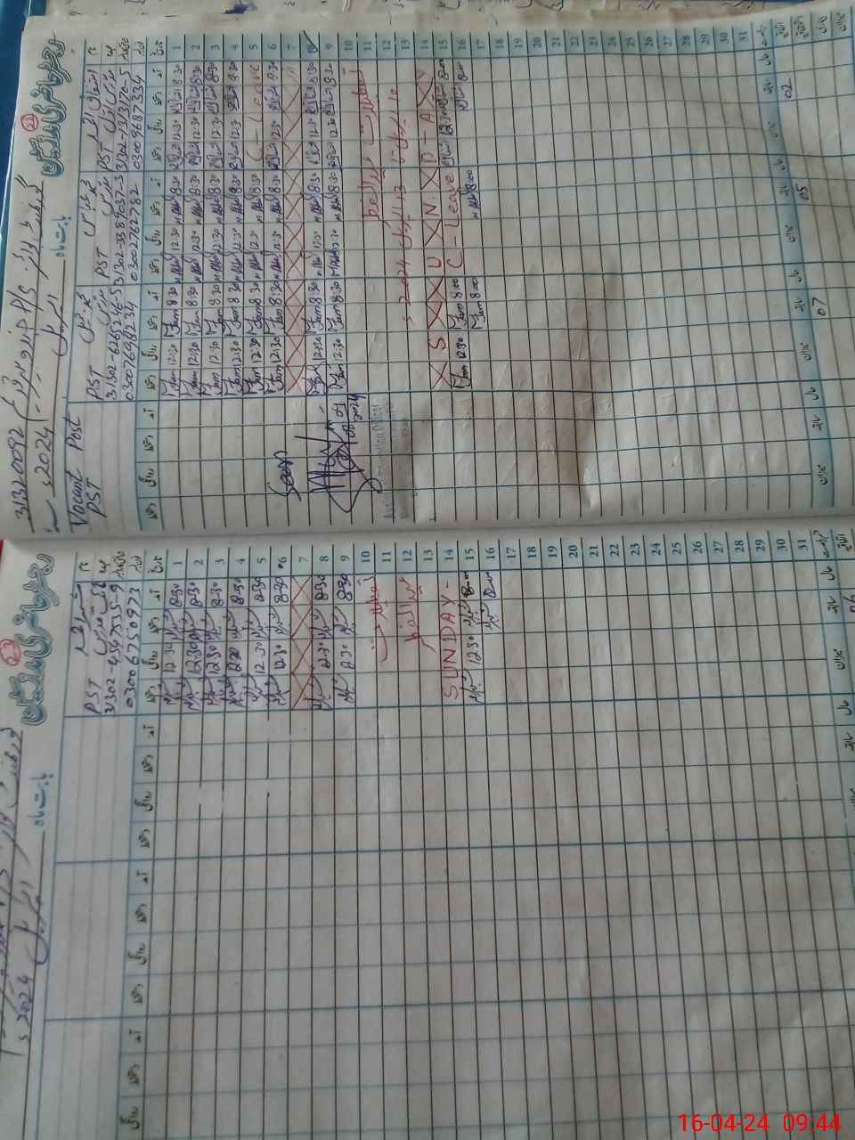 | Leave | Duty | Absent | Maternity | Medical | Ex- Pak |