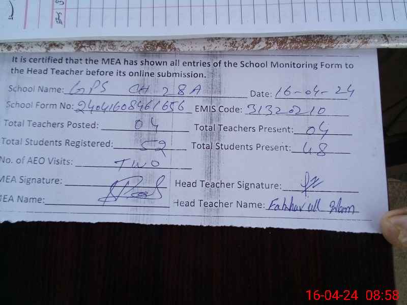 | EMIS Code: 31320210 | Name of School: GPS CHAK 28 A | |||