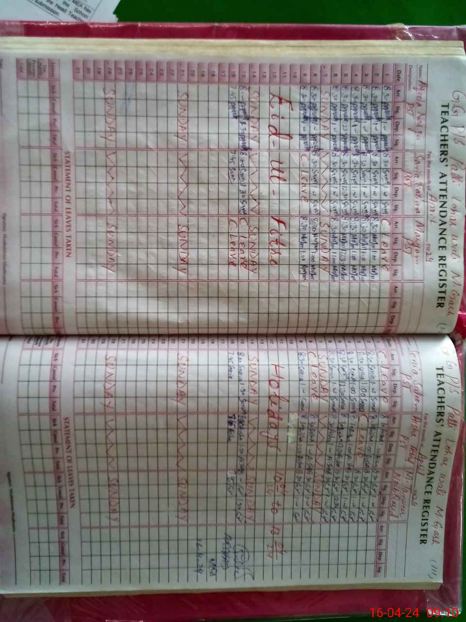 | Leave | Duty | Absent | Maternity | Medical | Ex- Pak |
