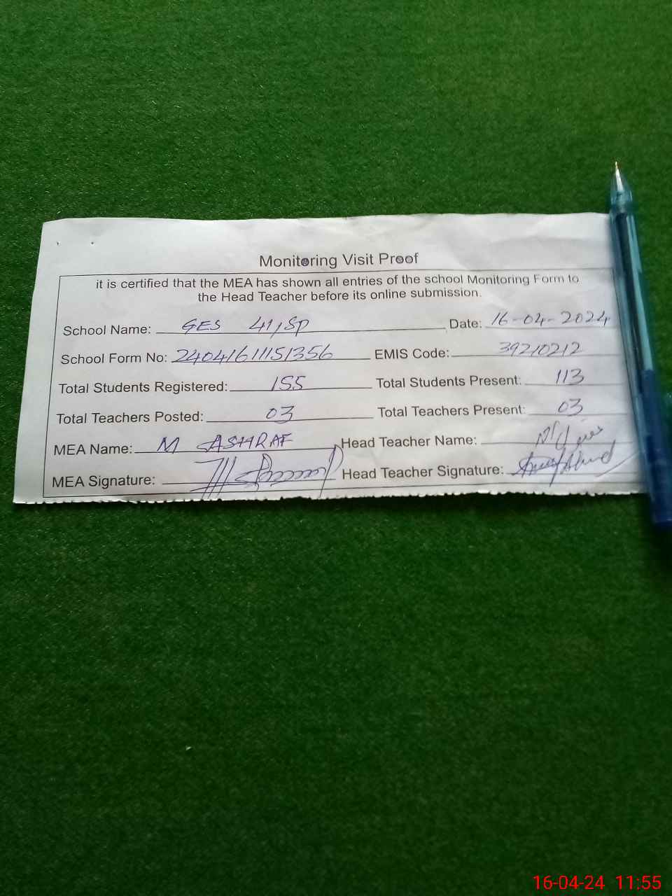 | EMIS Code: 39210212 | Name of School: GES 41 SP | |||